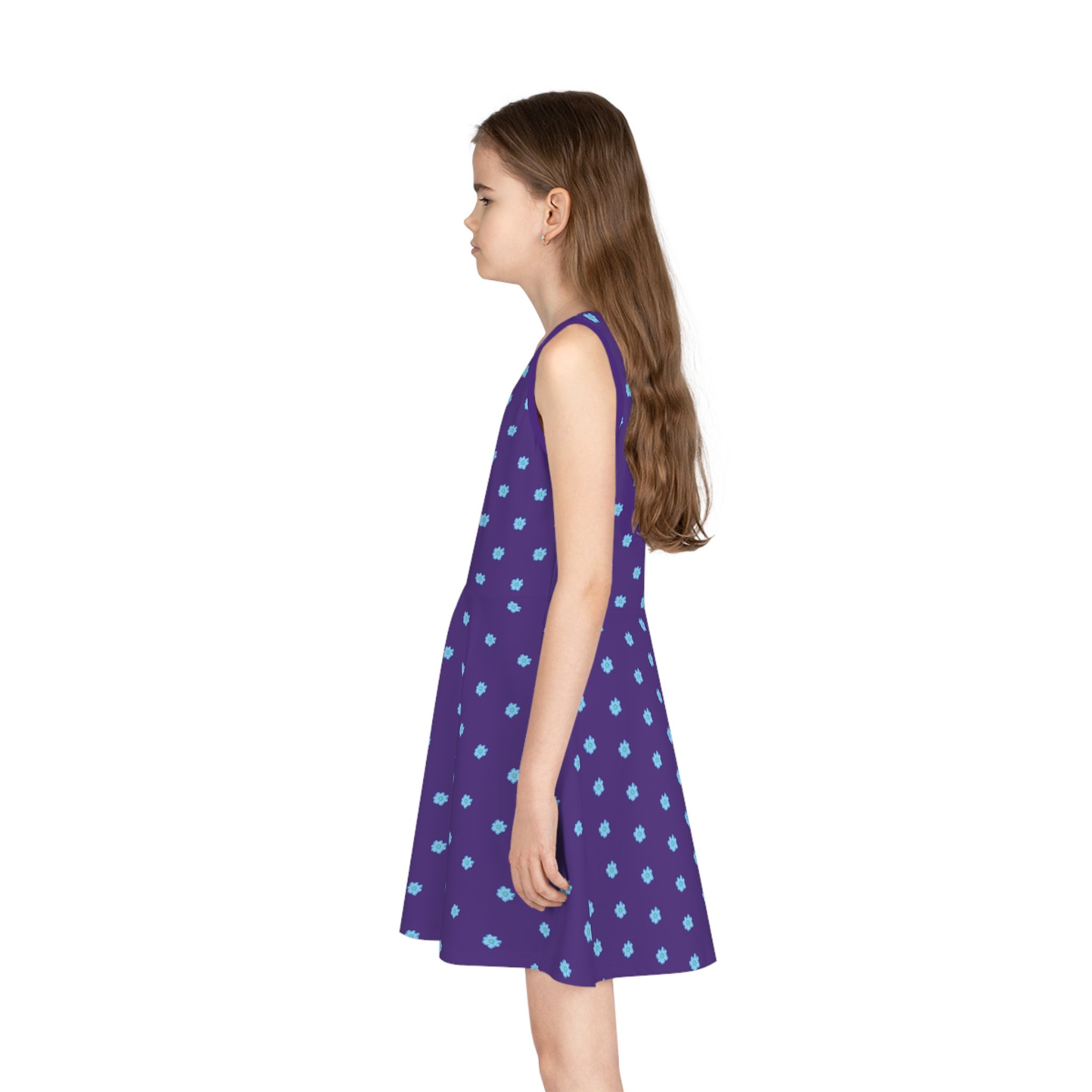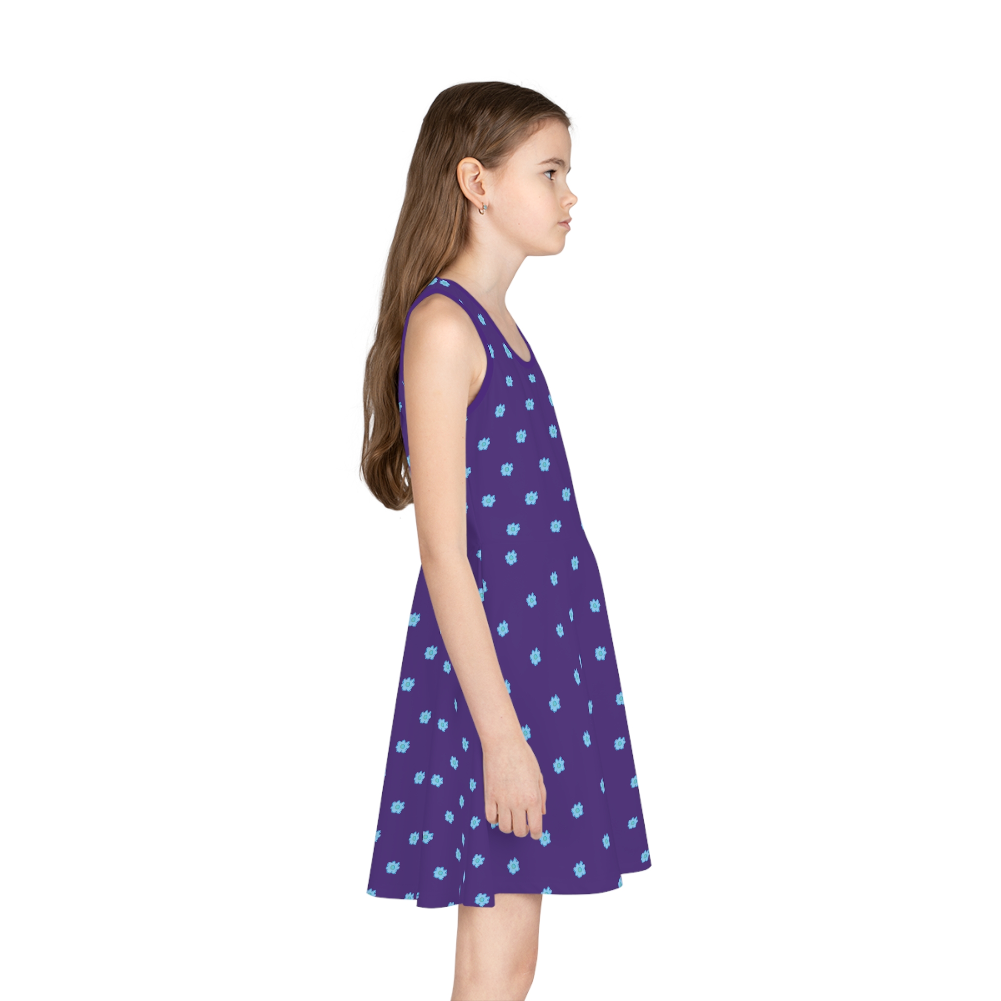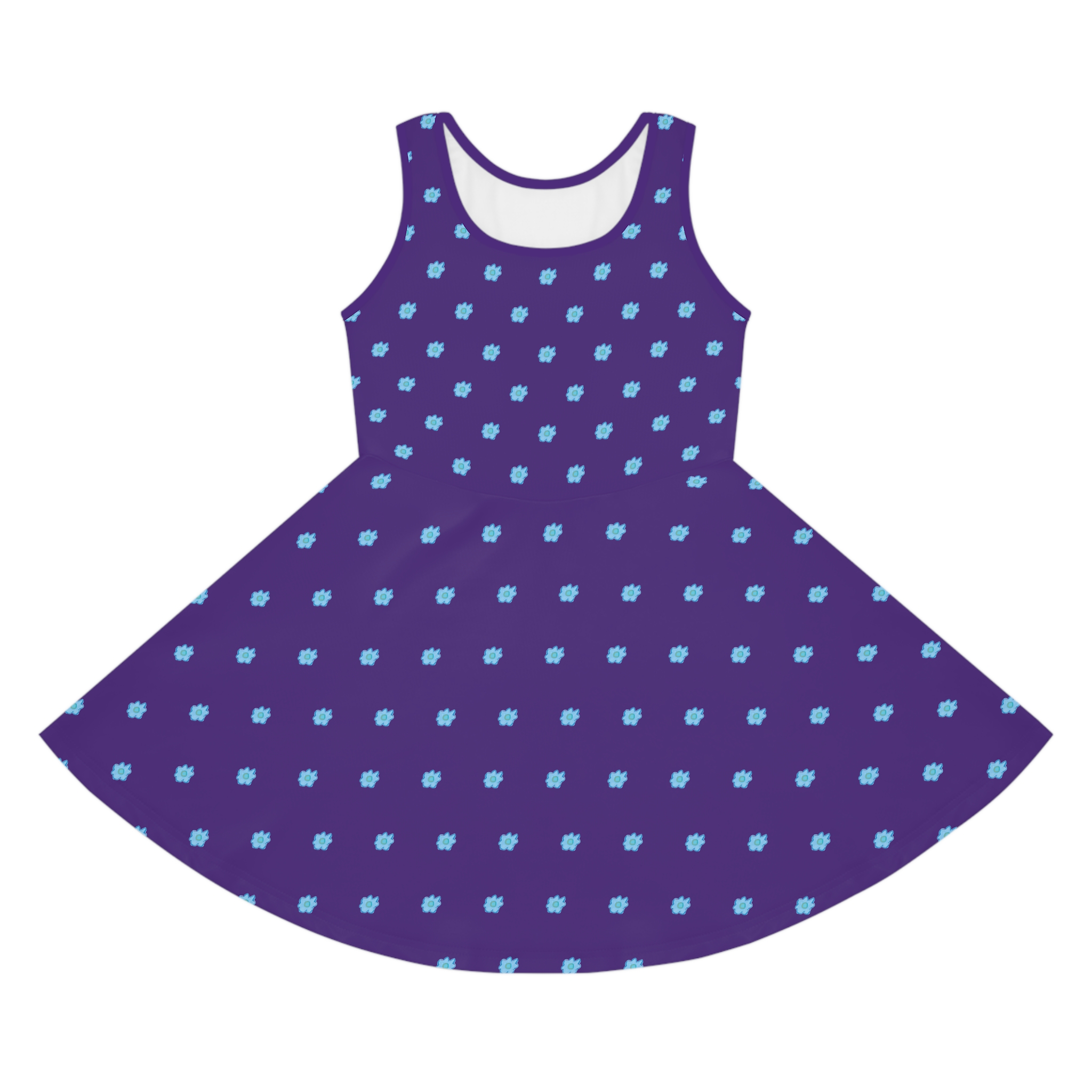 × Girls' Blue Flower on Purple Sleeveless Sundress