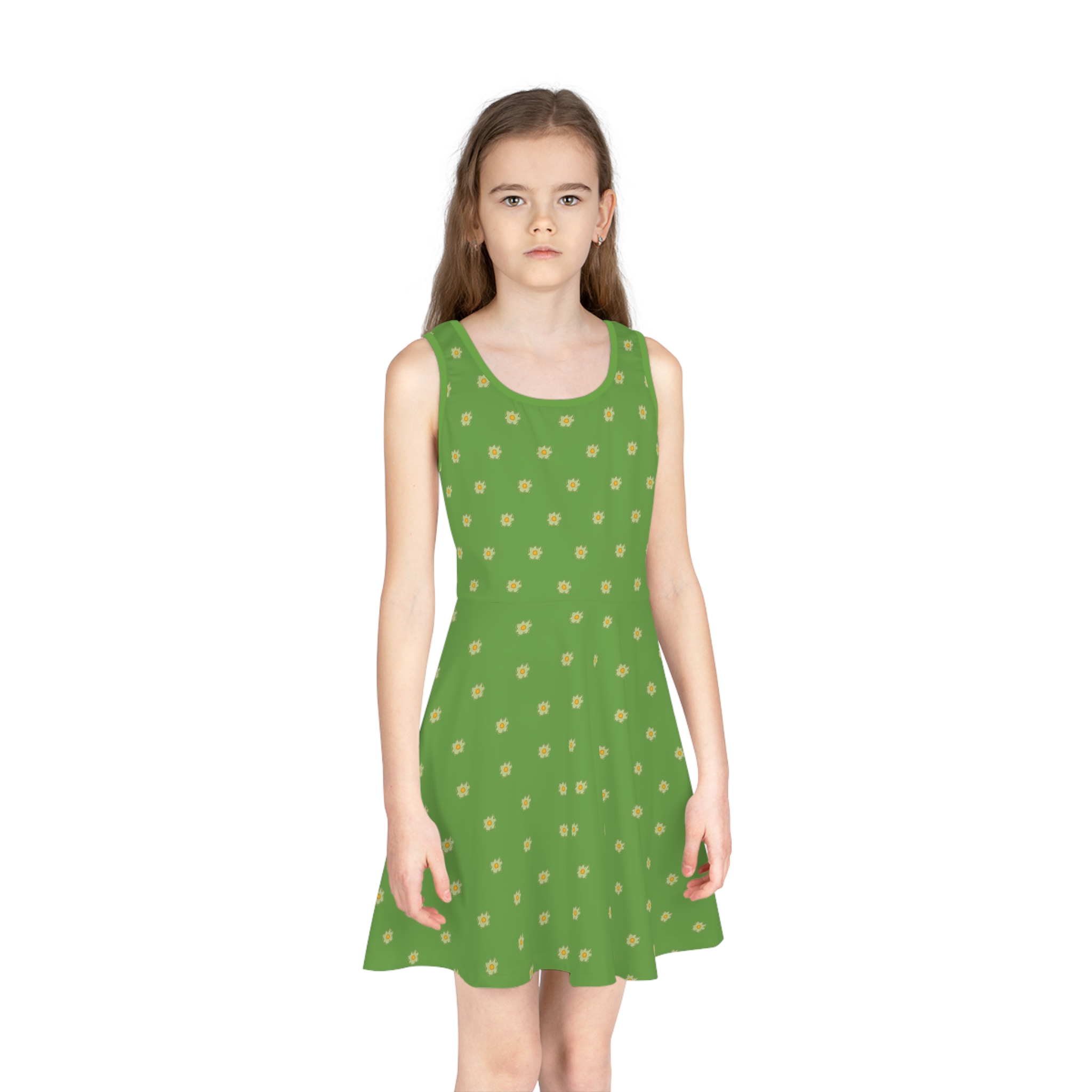 Girls’ Green on Green Flower Sleeveless Sundress (AOP)