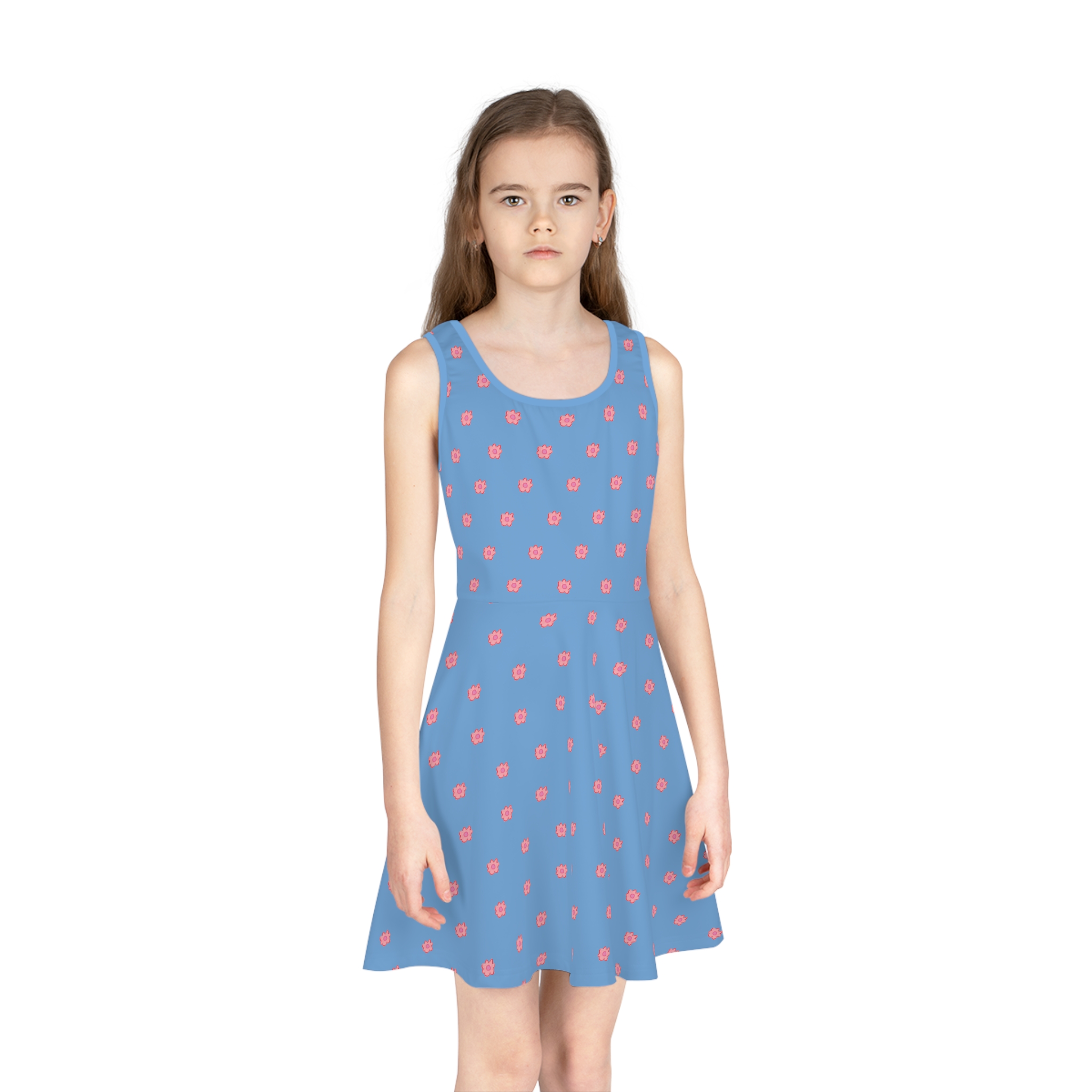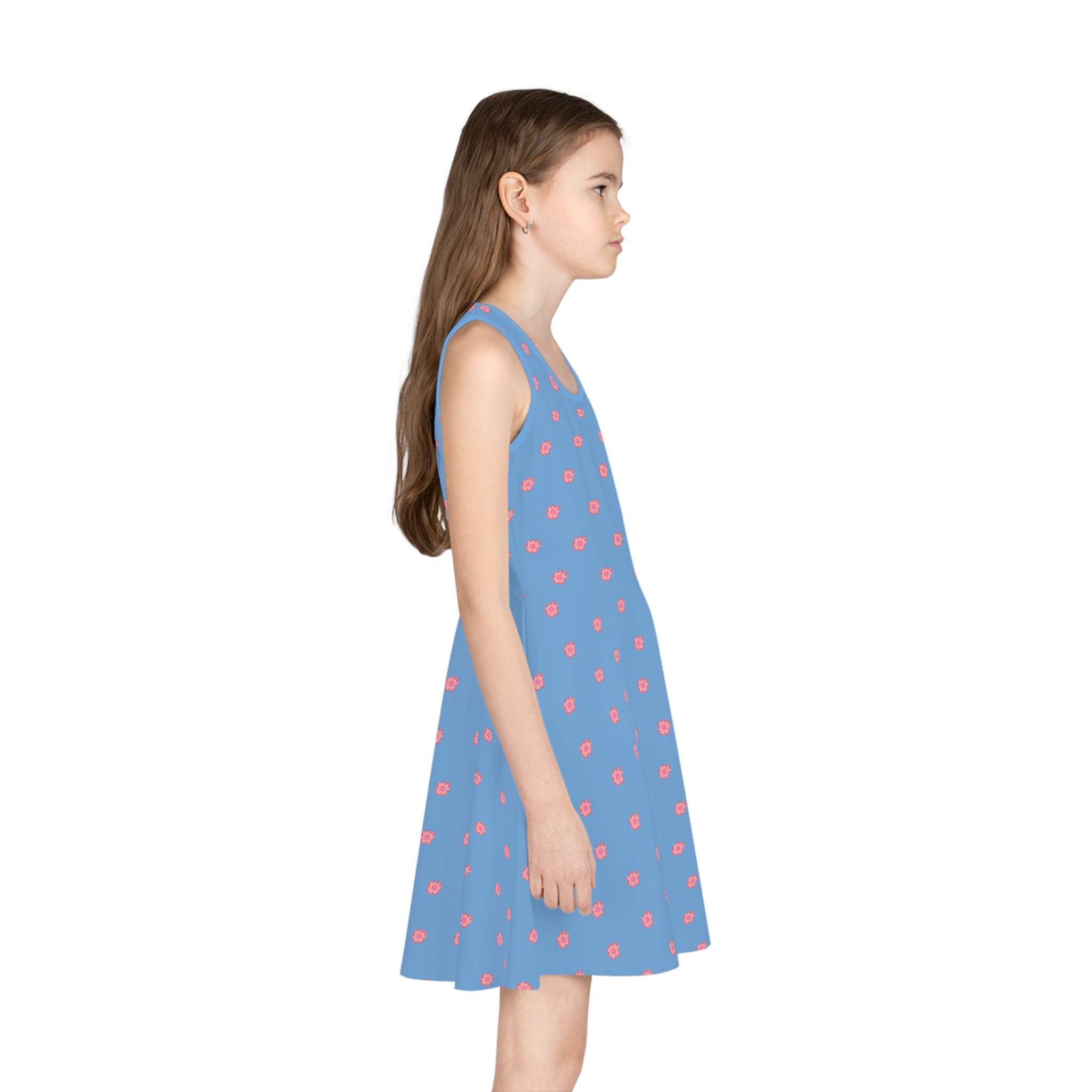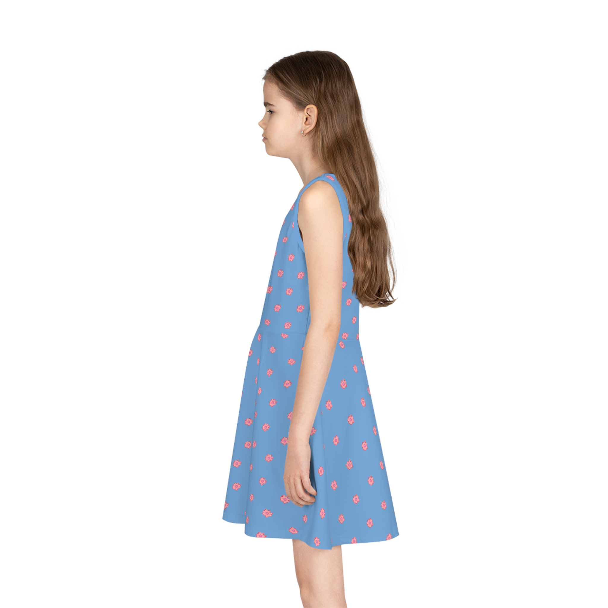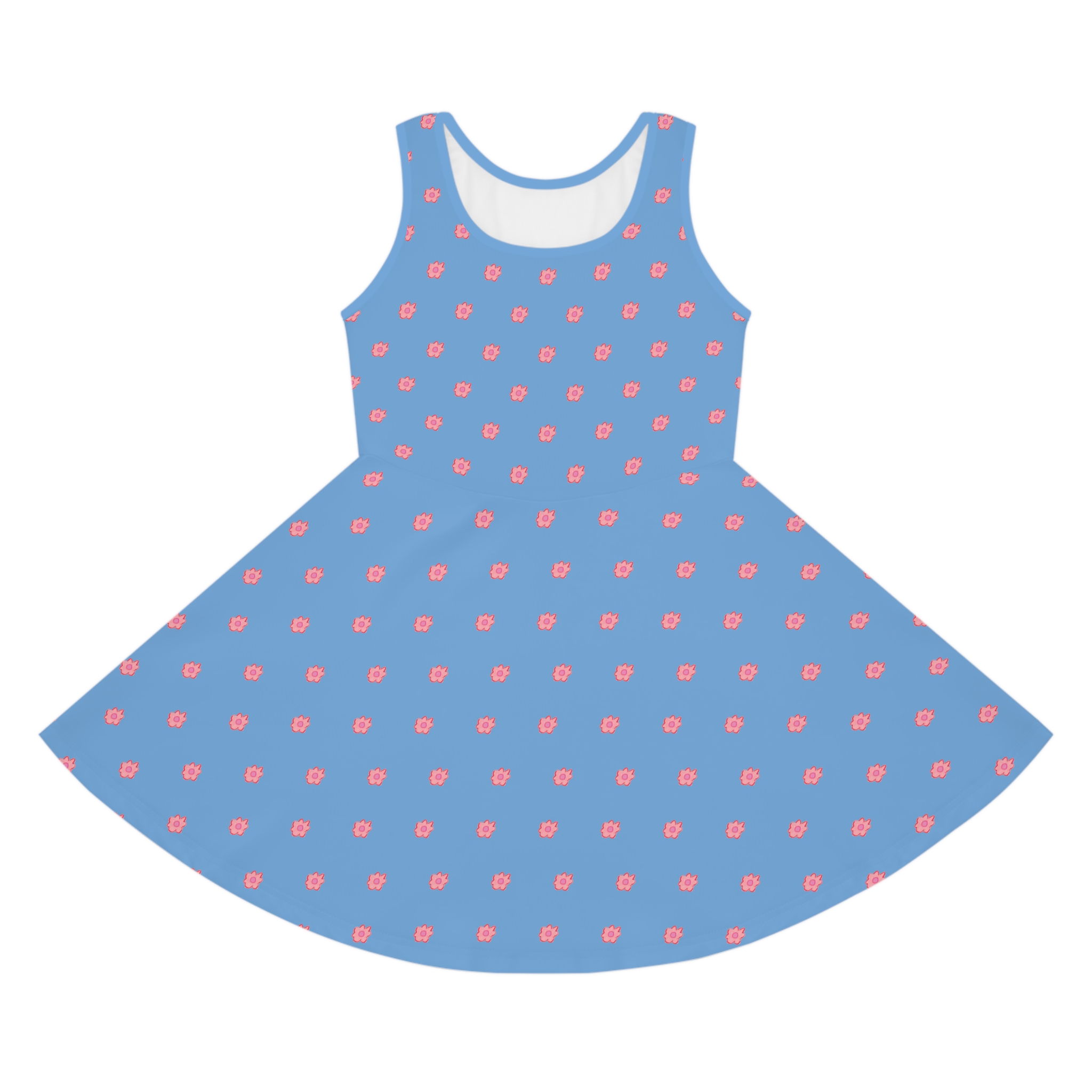 Be the first to review “Girls’ Pink Flower on Blue Sleeveless Sundress (AOP)”