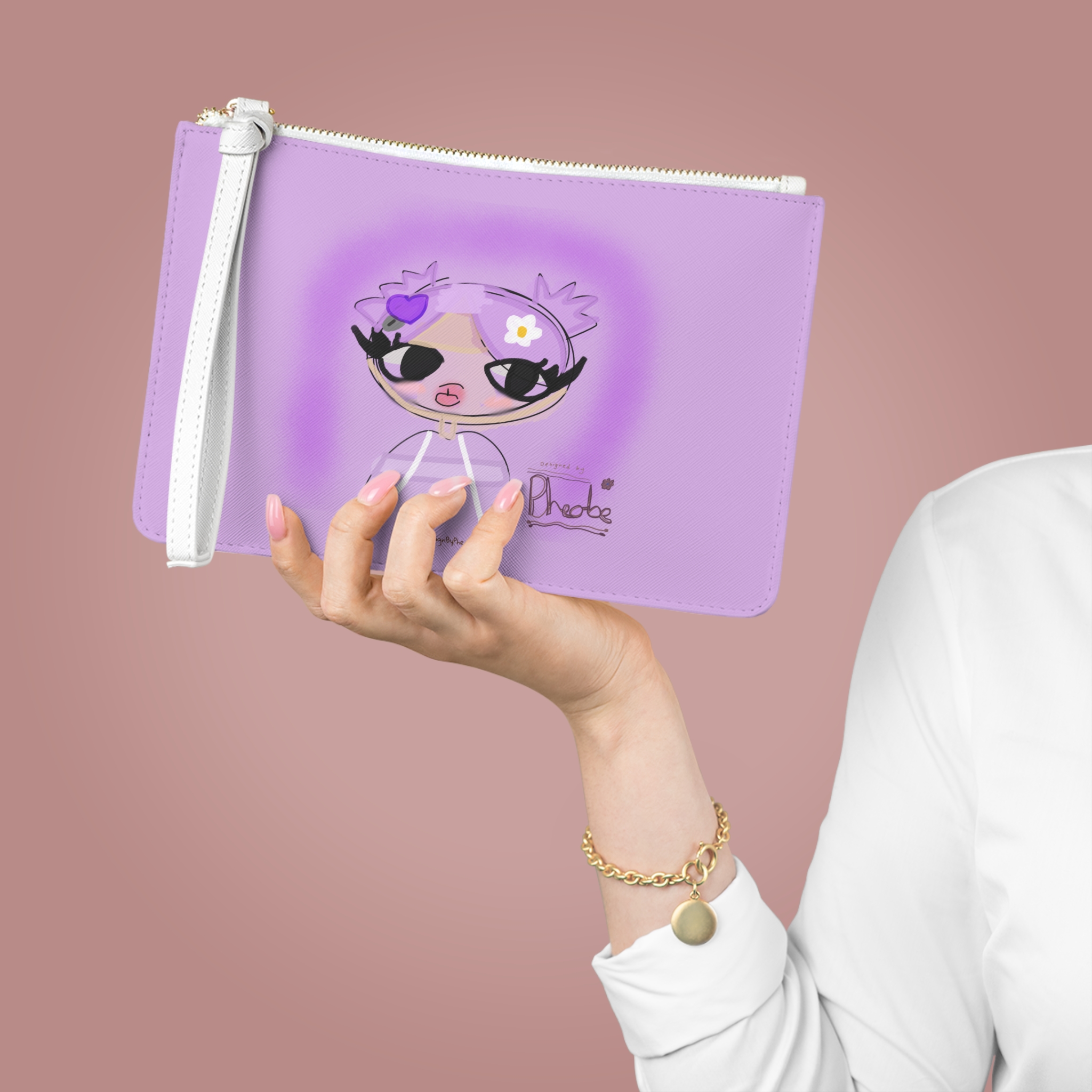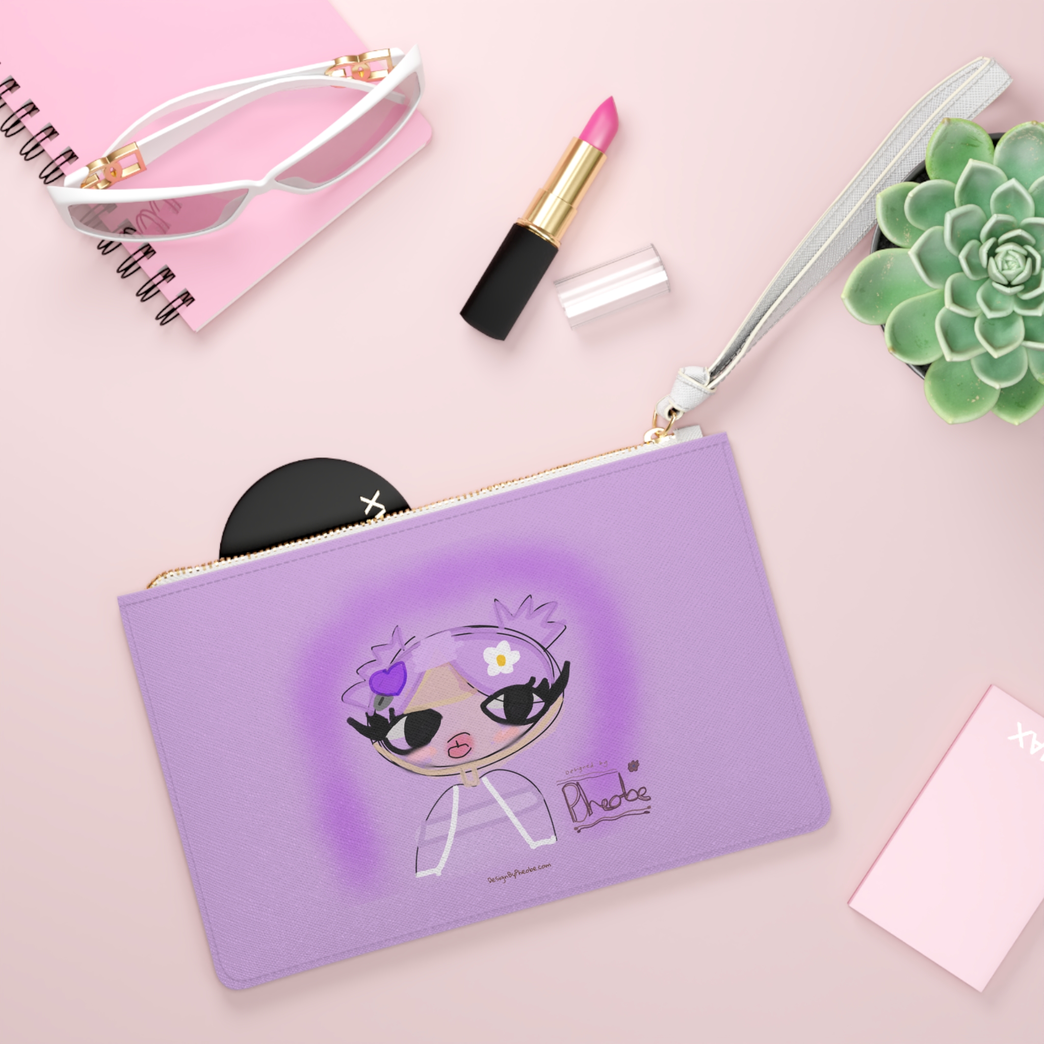 Designed with a loop handle to quickly free your hands, this custom clutch bag is made for the fashionista on the go. It can hold everyday essentials such as a phone, wallet, and keys. It features a zip fastening and a fully lined internal pocket. It is made of vegan leather in the Saffiano pattern finish that was invented by Prada.
